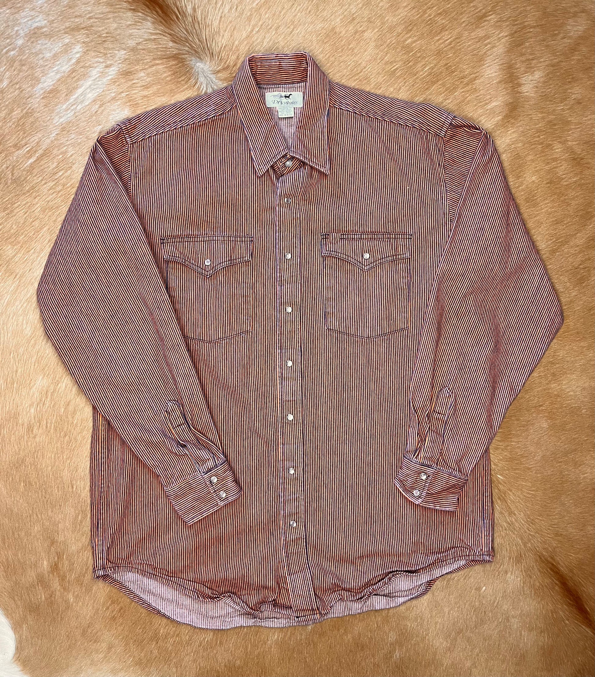 Men's Orange and Navy Pinstripe Pearl Snap, Large Tall
