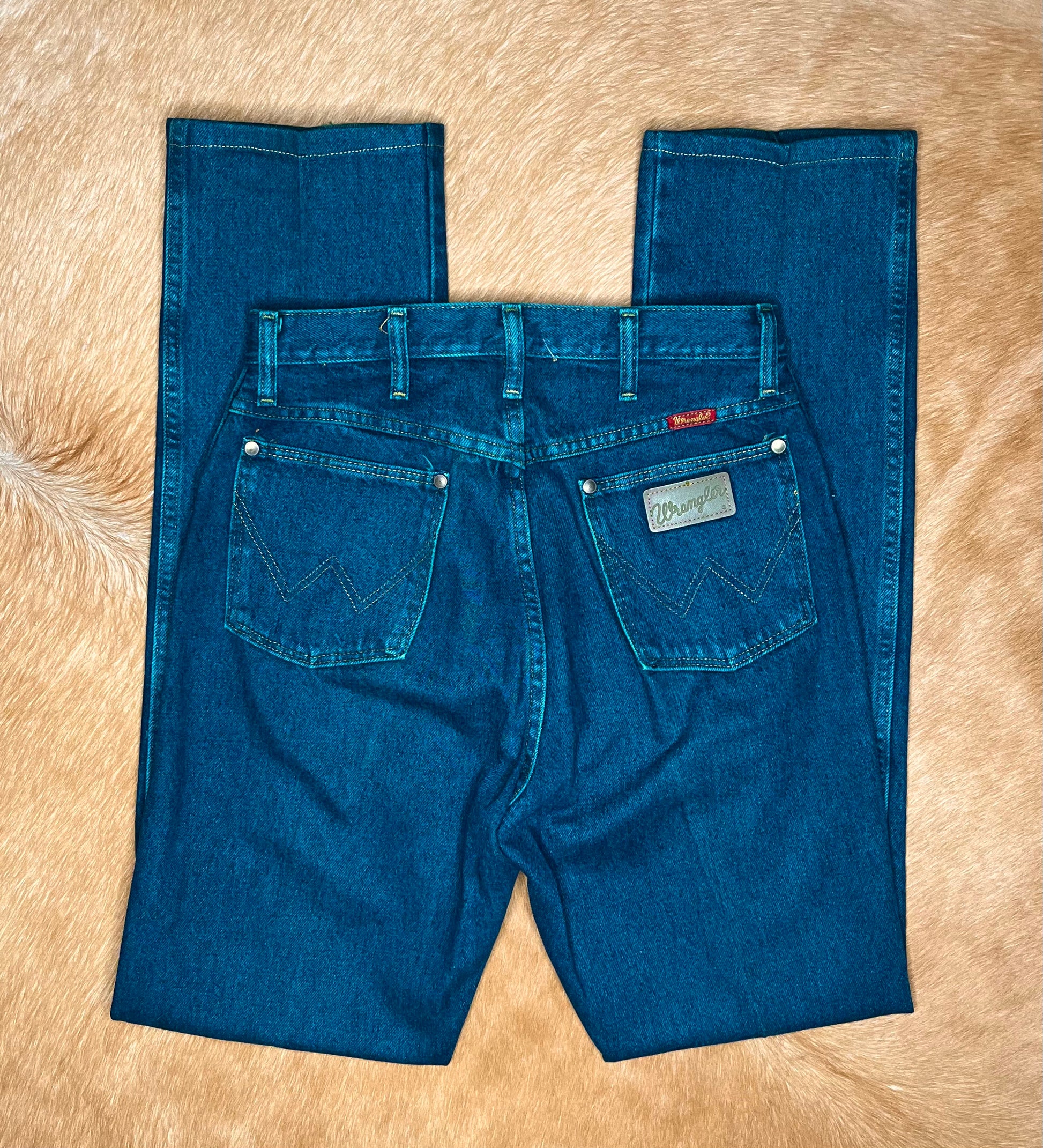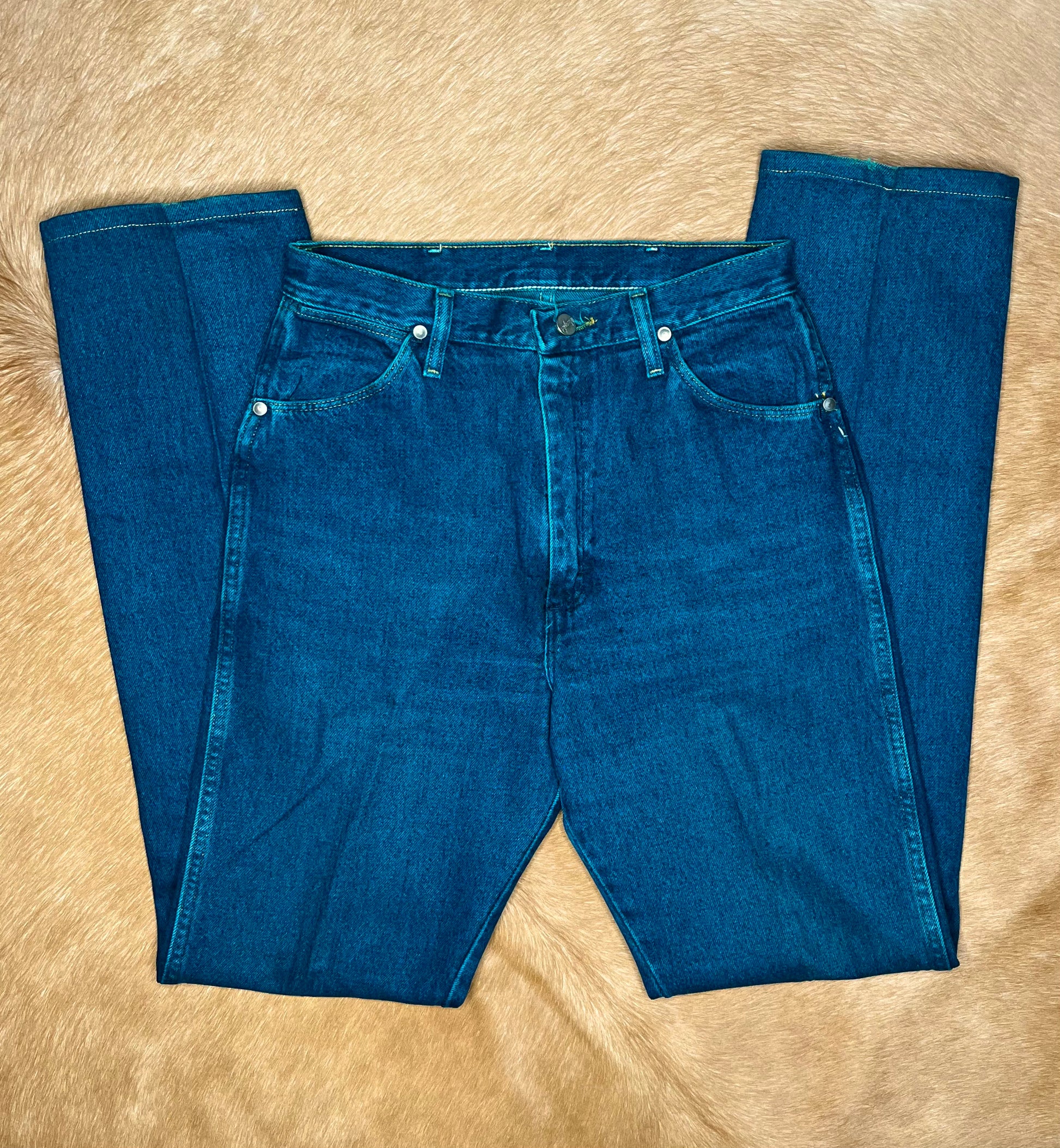 Beautiful teal that pictures can't capture! Teal is more vivid in person. Measures: 29" waist, 13.5" rise, 44" hips, 35.5" inseam.